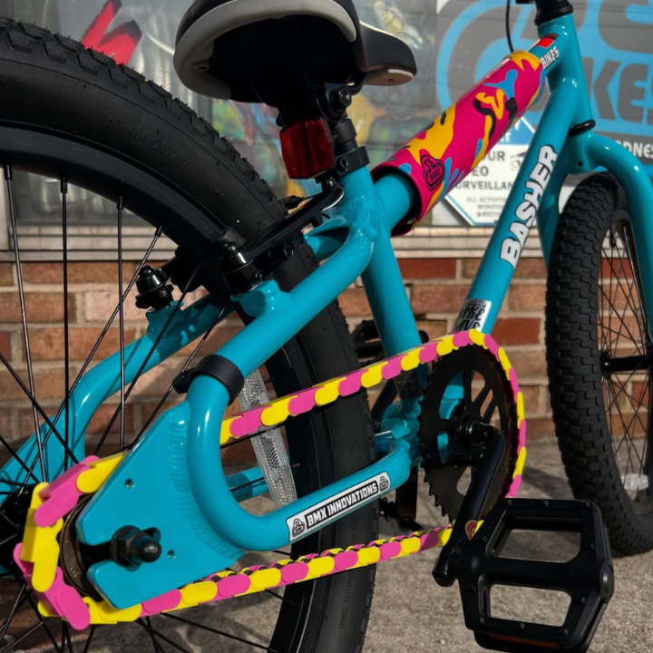 Insane Chains don’t just add color - they block grease from the messiest part of your bike. That means riders (young & old) can wear their favorite clothes and freshest sneakers without worrying about stains or smudges.