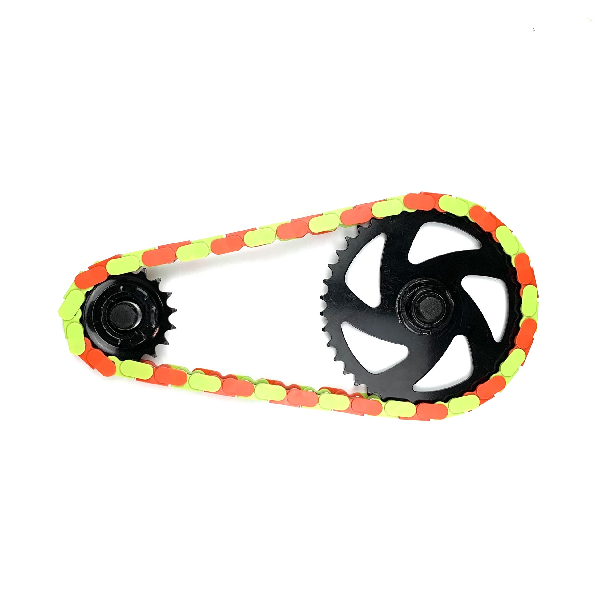 Our Solid Color Chains contain 56 pieces and snap on to chains that are installed on 16" Bikes and larger.