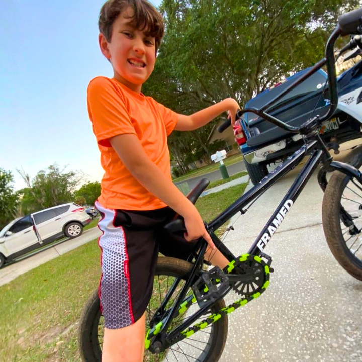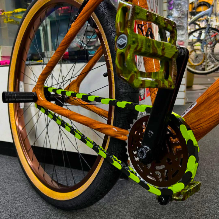 And Insane Chains don’t just look great. They also protect clothes from chain grease, keeping jeans, shorts, and sneakers clean while you ride. Parents love the practicality, while youth riders love the custom style and constant attention.