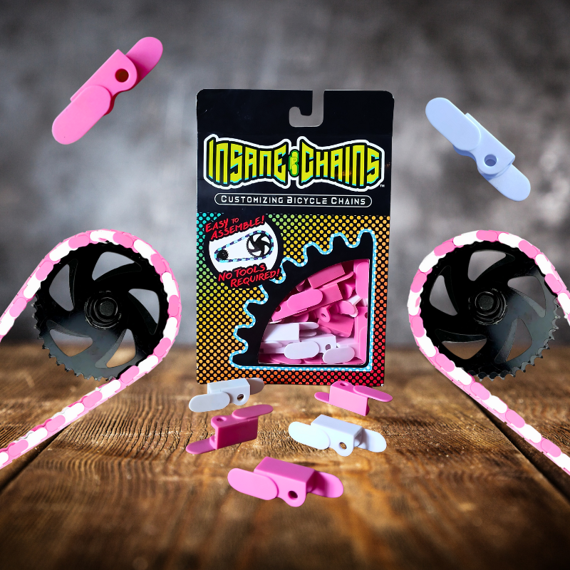 BMX Bikes Pink deserve more than just a bright frame — they need a chain that stands out too. With Insane Chains White & Pink Two Tone snap-on caps, you can turn any plain chain into a bold detail that gets noticed instantly. This best-selling combo mixes clean white with playful pink for a look that’s fresh, fun, and perfect for riders who want their bike to shine.
