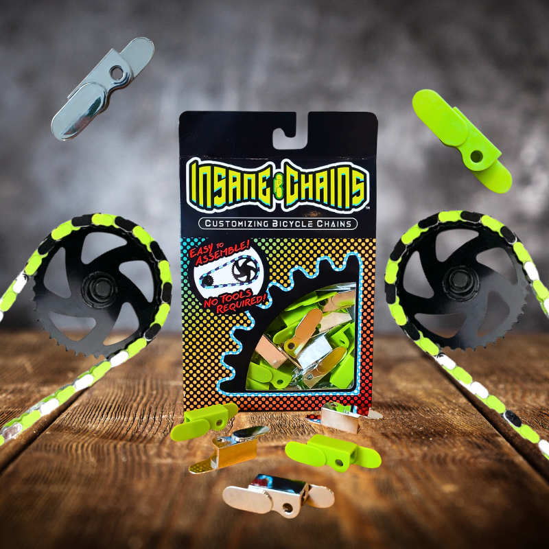Bring a high-voltage look to your single-speed ride with Insane Chains Chrome & Bright Green Caps. This electric combination pairs the premium shine of chrome with a vivid, fluorescent green, creating a style that is both clean and impossible to miss. It's the ultimate style upgrade for any single-speed bike - from a sleek cruiser to a head-turning BMX. And with our tool-free, snap-on design, you can get a custom look in seconds while protecting your clothes from messy chain grease.