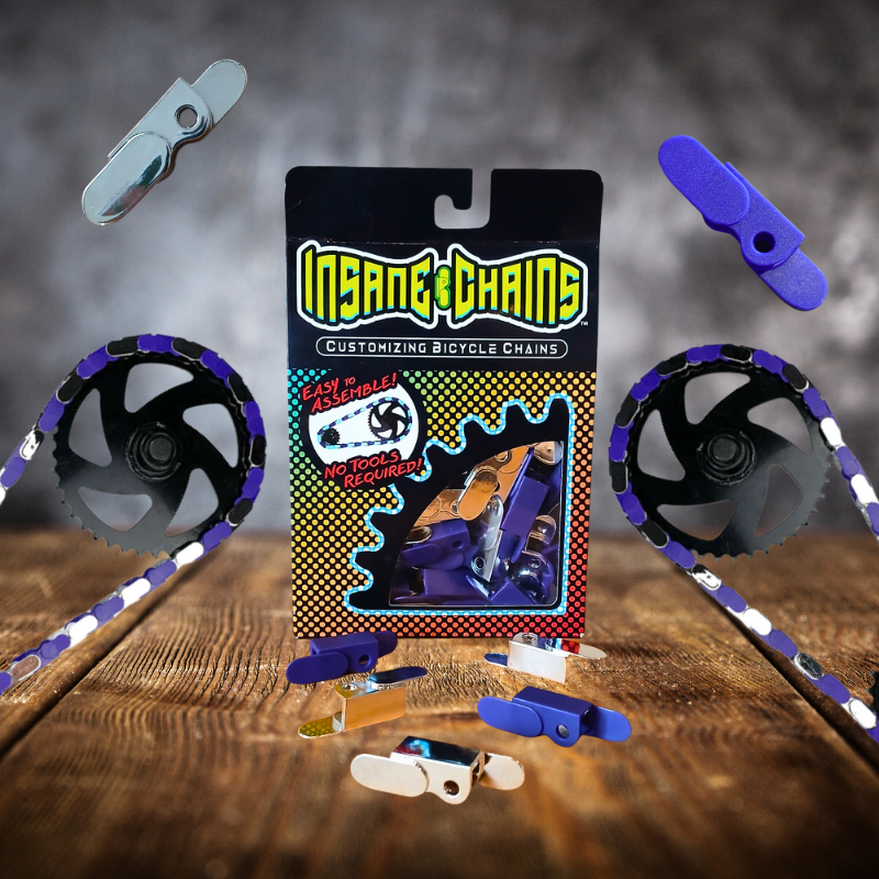 Give your single-speed ride a dose of instant attitude with Insane Chains Chrome & Purple Caps. This rebellious combination pairs premium, mirror-like chrome with a vivid, deep purple, creating a style that is both clean and confident. It’s the ultimate style upgrade for any single-speed bike—from a sleek cruiser to a head-turning BMX. And with our tool-free, snap-on design, you can get a custom look in seconds while protecting your clothes from messy chain grease.
