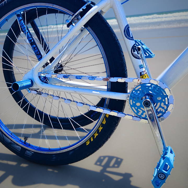 Achieve a sleek, minimalist style for your single-speed ride with Insane Chains Chrome & White Caps. This crisp, high-contrast combination pairs the premium shine of chrome with a classic, clean white, creating a look that is both modern and timeless. It's the ultimate style upgrade for any single-speed bike—from a retro cruiser to a performance BMX. With our tool-free, snap-on design, you can get a custom look in seconds while protecting your clothes from messy chain grease.