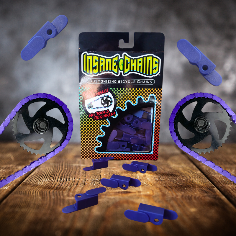 Ride with instant attitude and a splash of vibrant color with Insane Chains Purple Caps. These bold, solid-color caps provide a confident and unique look for any single-speed bike, from fixed-gear rides to BMX and cruisers. Our patented snap-on design means you can install them in seconds without tools, instantly transforming your bike while also protecting your clothes from messy chain grease.